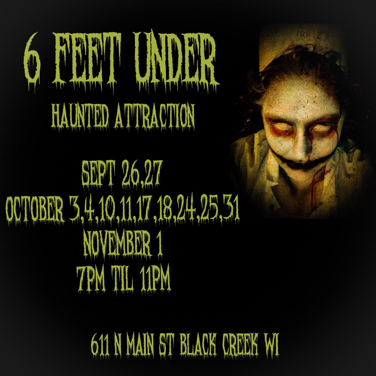 6 Feet Under Haunted Attraction is a new Haunted House in Black Creek Wi. About 7 thousand square feet of Haunted House space.